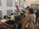 Jajaran Polrestabes Surabaya mengikuti aksi donor darah di peringatan Hut Bhayangkara ke 78 tahun. (Dok…